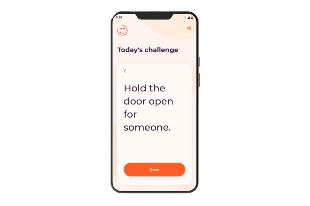 Onni is a mobile app that gives its users daily happiness challenges with the purpose of increasing their wellbeing and doing something good for others.